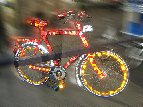 L'éclairage des bicyclettes est aussi importants pour éclairer votre chemin que pour vous faire voir sur la route de nuit. Je vous conseille un phare avant brillant à LED et au moins une lumière LED rouge non clignotante à l'arrière, les deux fixés sur le vélo. Si vous tenez absolument à avoir une lumière intermittente à l'arrière pour être plus visible, rien ne vous empêche de la porter sur le casque, le vélo, les sac à dos, etc. mais uniquement si elle seconde le phare arrière qui doit être de fonctionnement constant.
